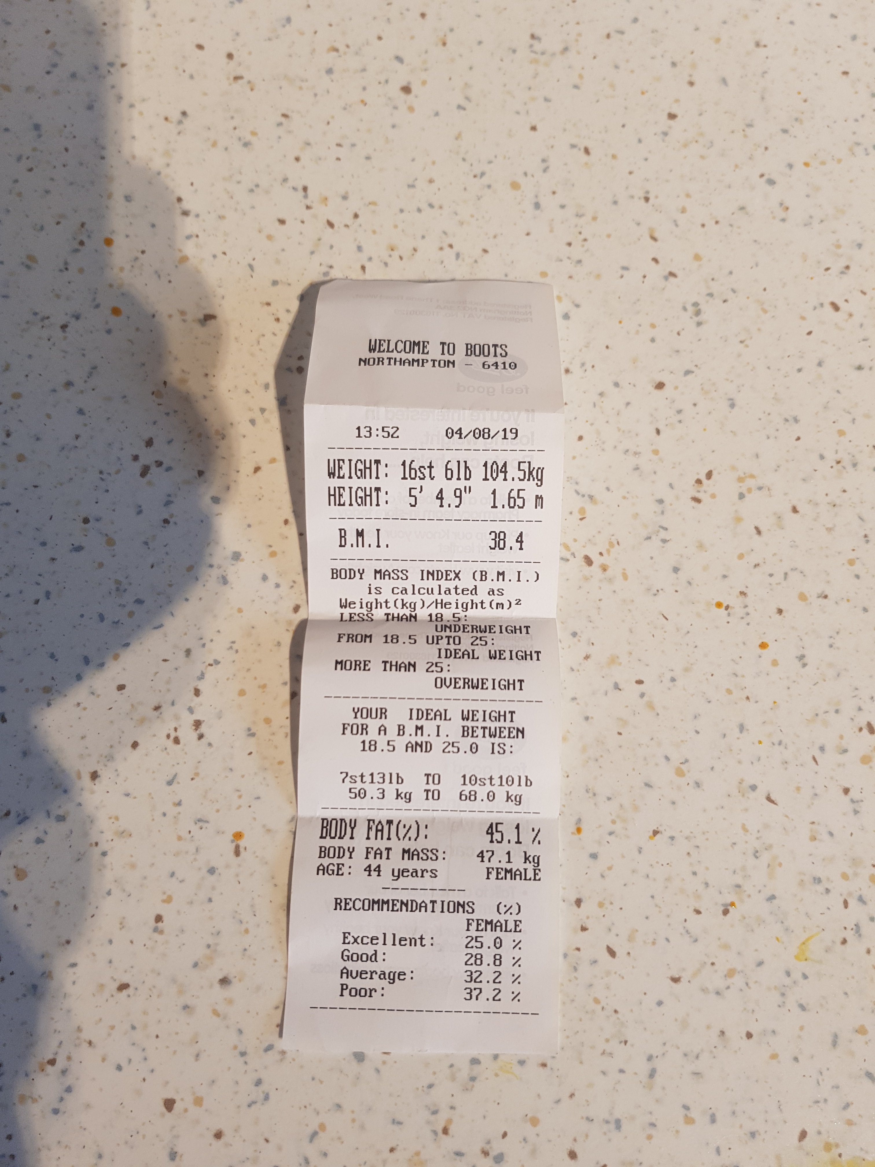 All in all a good end to the week – I’ve also got a print out from Boots for my weight etc, it slightly differs from my scales, so will use the Boots as my official recording from now on. My photos since Wednesday below.