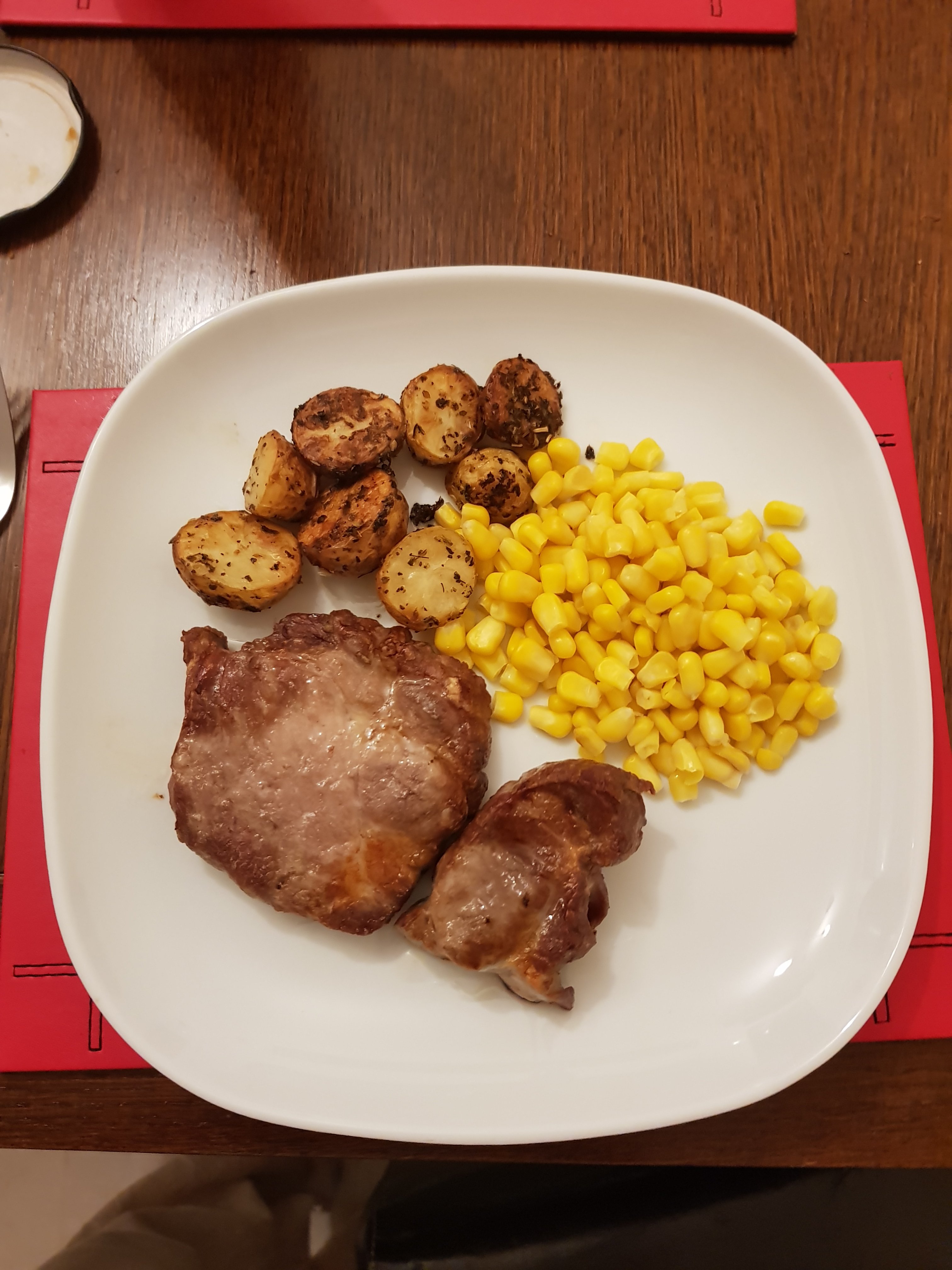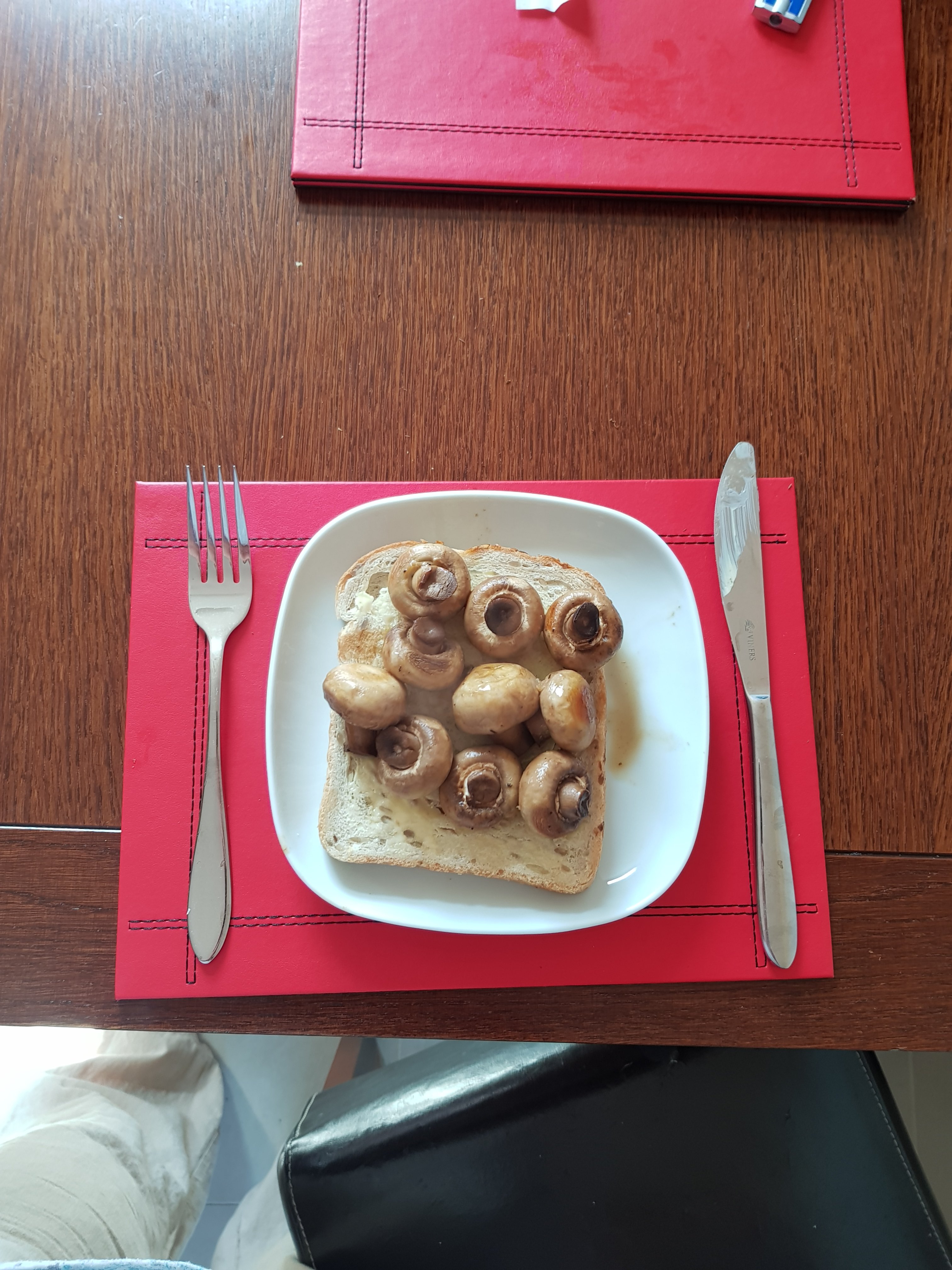 This left me with a day to do with as I pleased, so I started the day with mushrooms on bread and finished with pork, potatoes and sweet corn. Dinner being shared with my daughter and her fiancee.