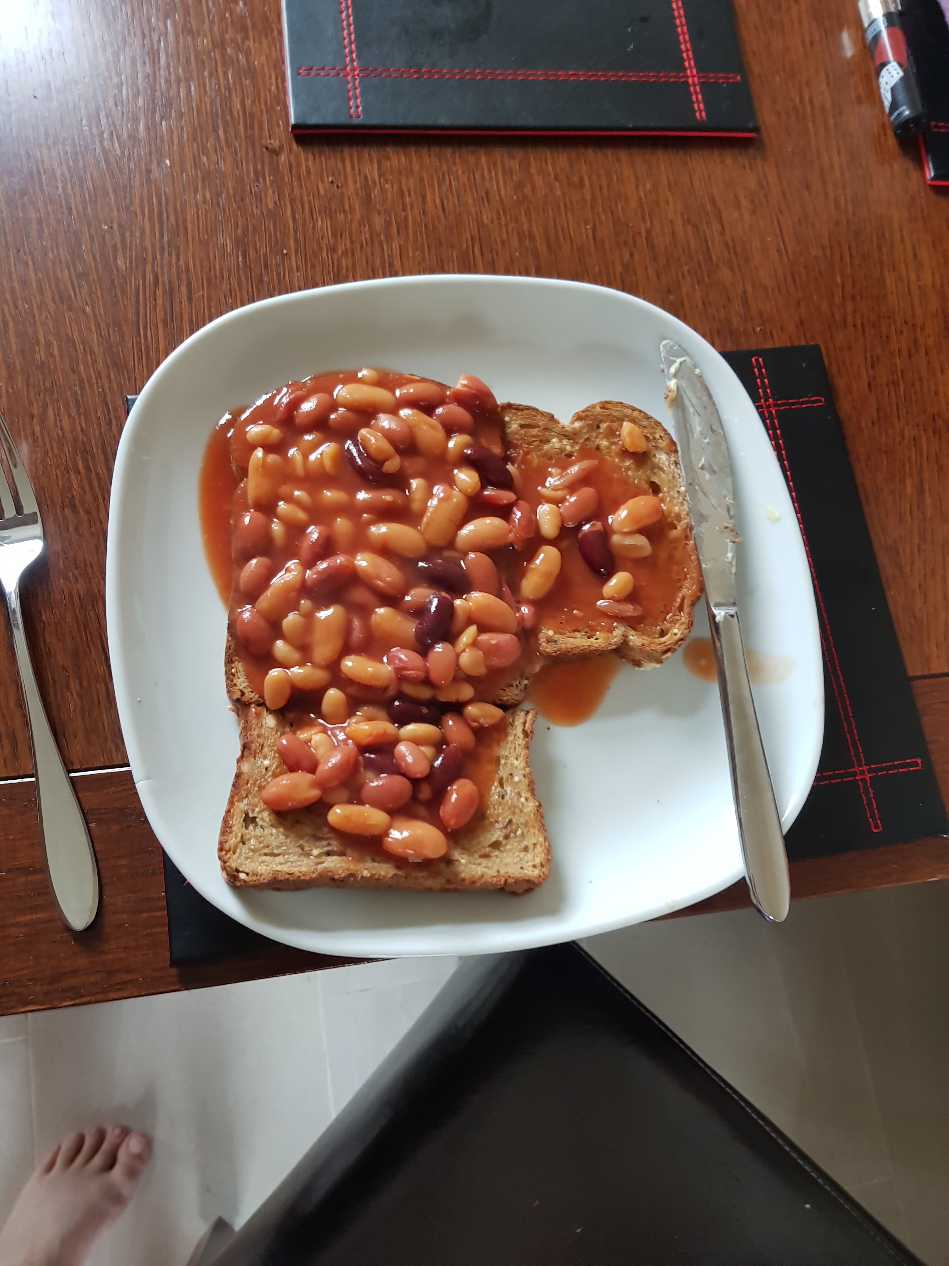 We had five beans baked beans on toast for breakfast, and healthier fish and chips for dinner.