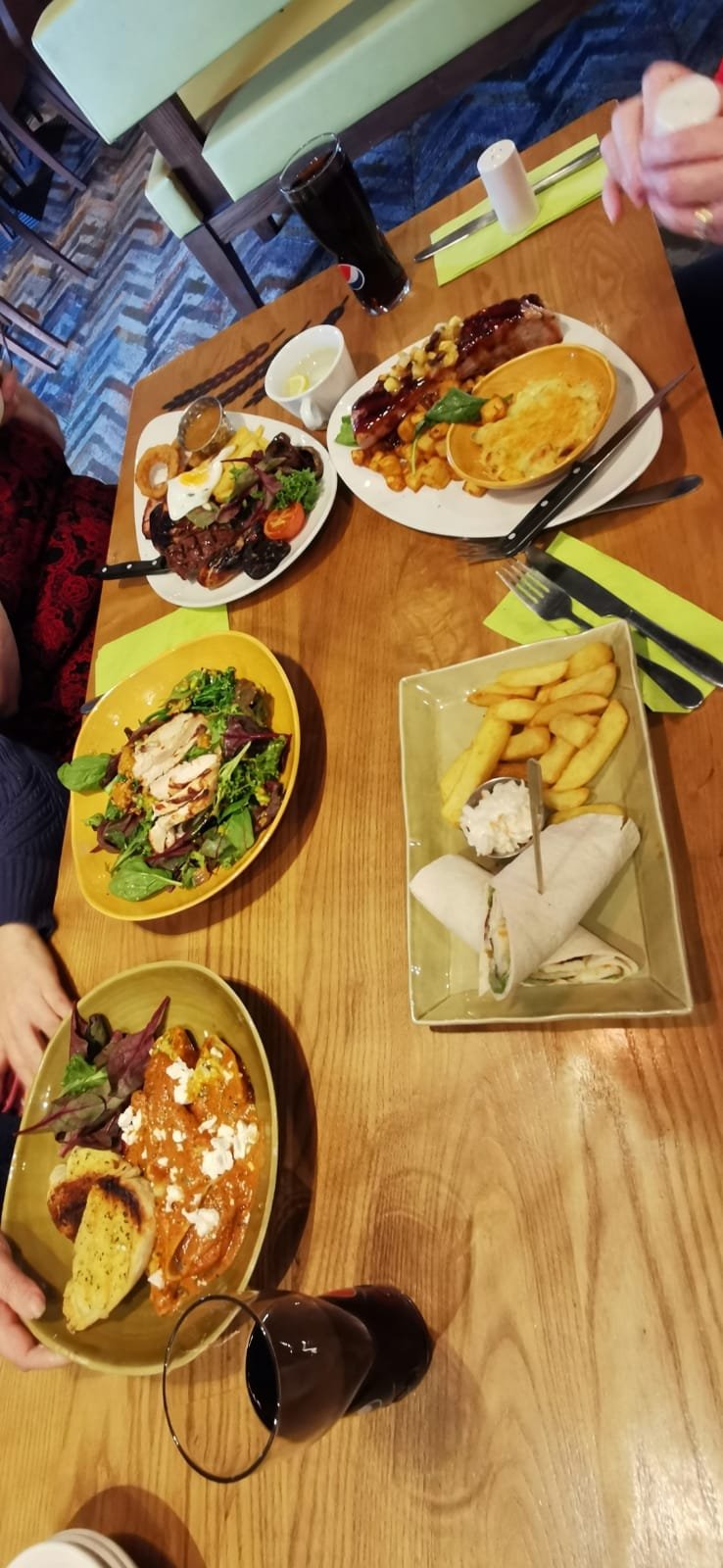 Now, my mum had belly pork, my aunt had a mixed grill, my sister had ravioli and my daughter had a wrap and chips. Surrounded by such delicious food. How could I resist, I mean, it all looked so amazing… Well, i had chicken salad – WOOHOO… GO ME!