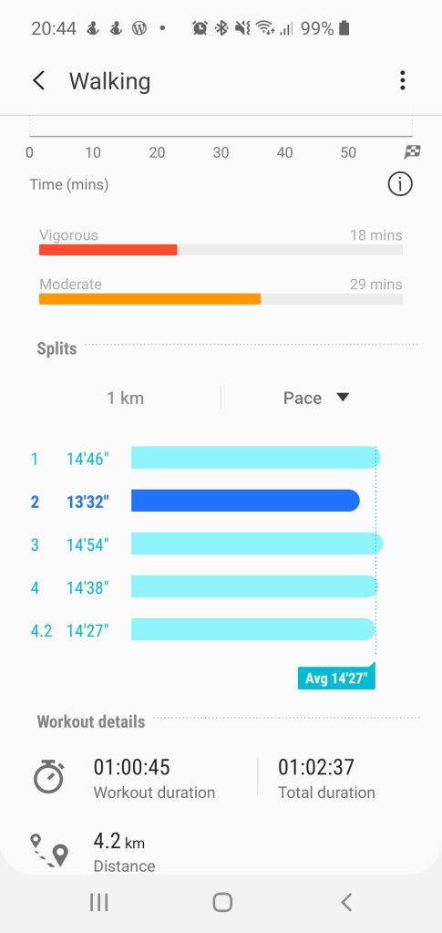 So this week so far, 78 minutes of vigorous activity and 69 minutes of moderate activity… YAY!