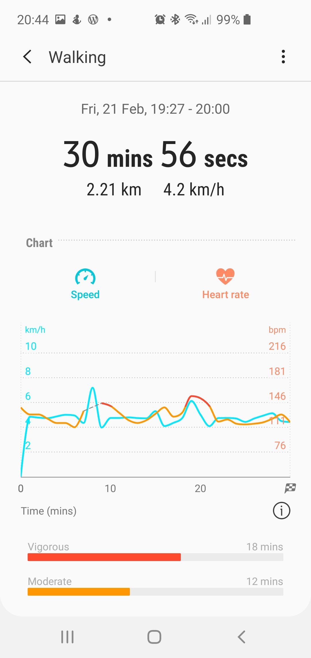 So 18 minutes of vigorous activity and 19 minutes of moderate activity to go on my tracker.