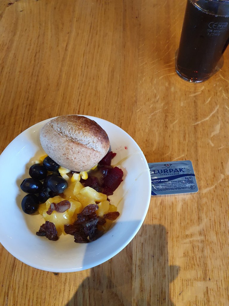 Fluid – 200ml of milk, 2 cups of tea, 1 glass of diet coke, 1 can of Pepsi max, 1 glass of Welsh liqueur.