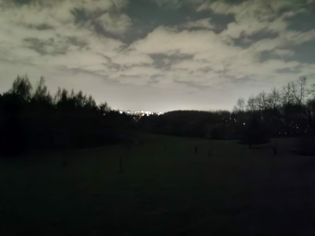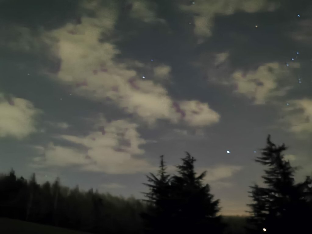 It was stunning! No street lights, no people, beautiful sky with clouds and stars, wind whooshing through the trees.