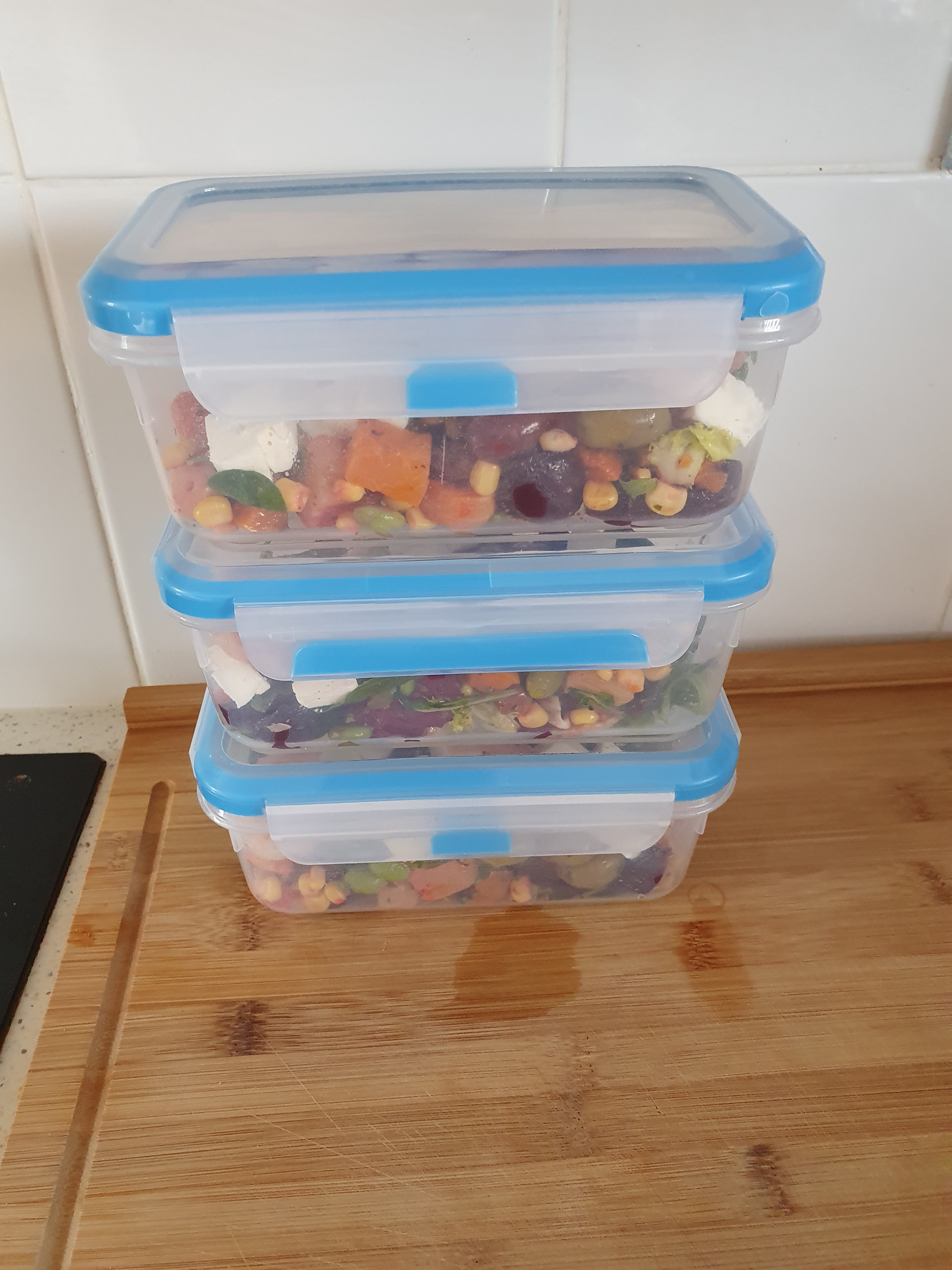 I’ve prepped our fruits and nuts for the week, and split my salad (which Paul went out for while I weighed fruits and nuts) into three days. So at least I can run and go in mornings.