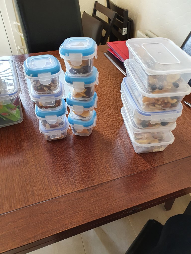 So, friday… 40g natural nuts, 60g dried fruits, 1 cheese portion.