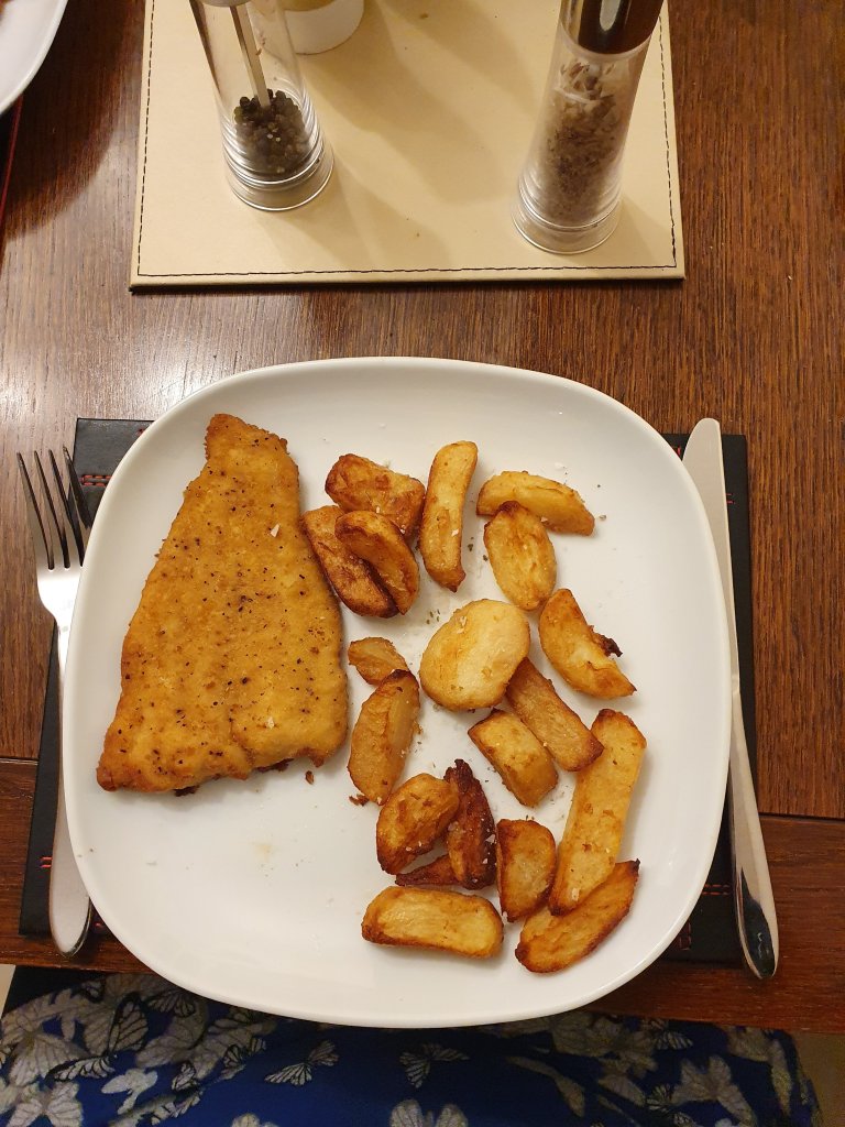 For dinner we had lightly dusted plaice and oven cooked chips.