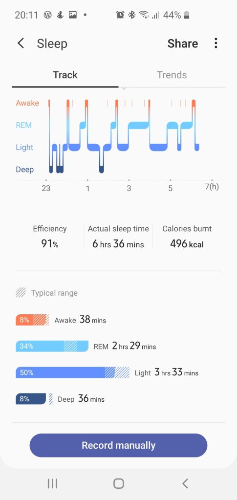 Exercise – in total 61 minutes of moderate activity, 32 minutes of vigorous activity. Walking, cardio and strength!