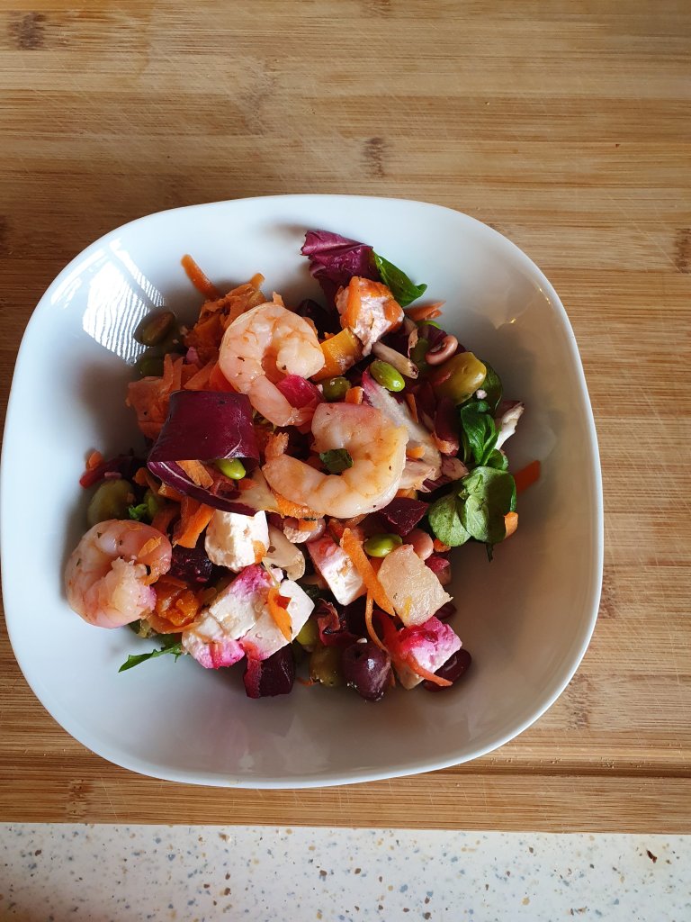 After dinner I needed to make an emergency lunch for tomorrow! Brown pasta, frozen sweetcorn added in the last couple of minutes of pasta cook. Small tin of tuna drained mixed with lighter than light mayo and a good splash of sweet chilli. Everything mixed together once cooled.
