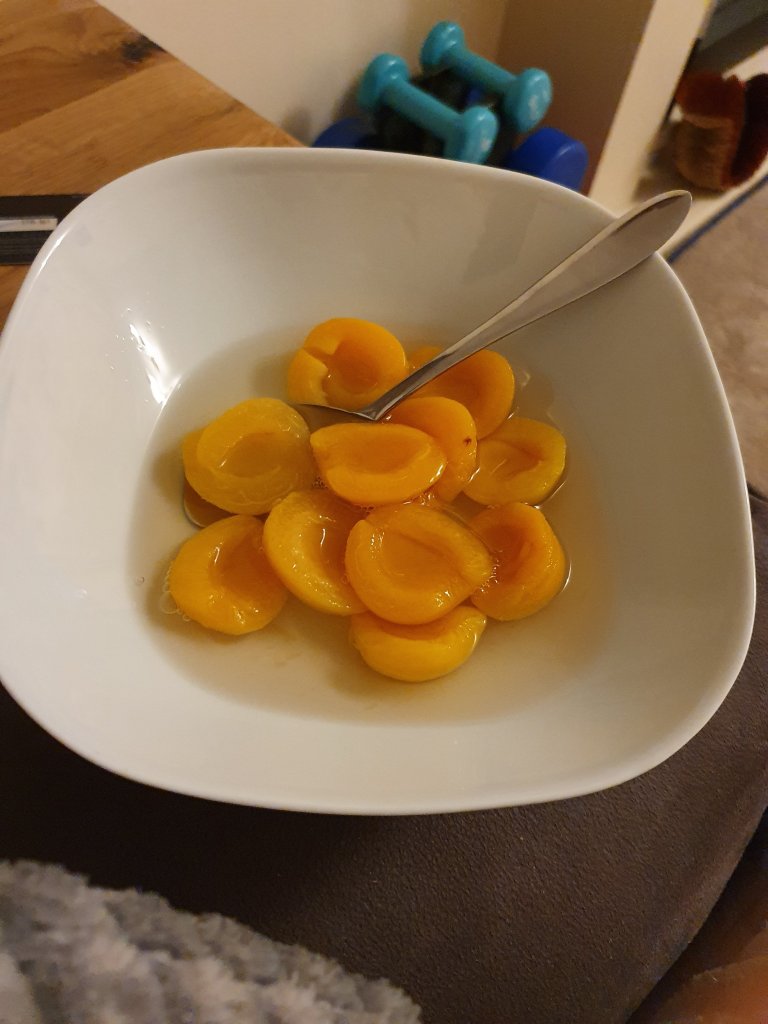 For supper we had tinned apricots.