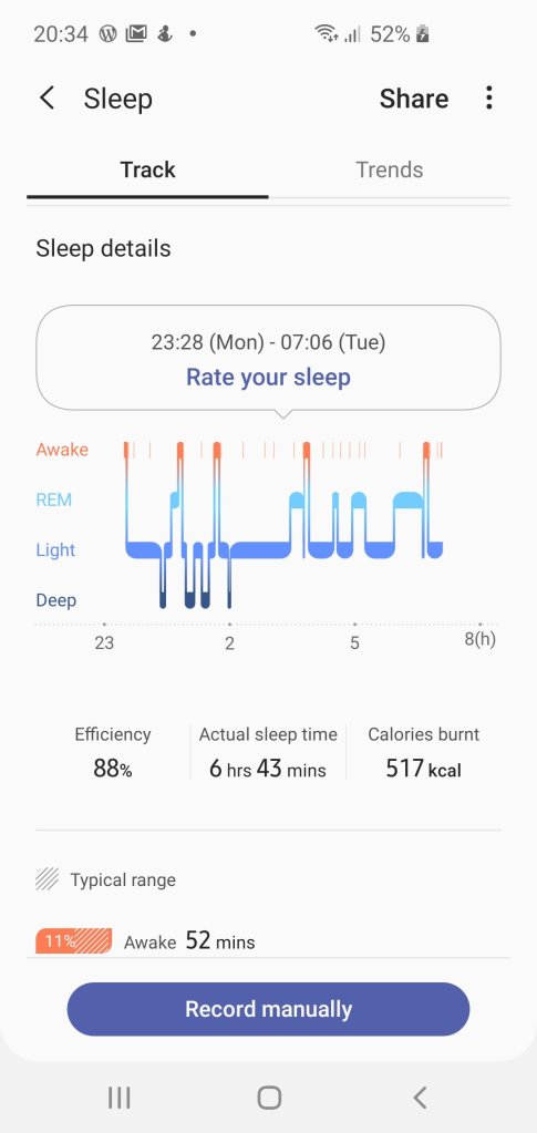 Sleep – not too bad, I did stay up late last night though as I wanted to watch news night.