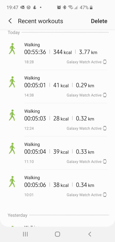 I’ve decided on a substitute workout programme, walking every day, no less than five walks a week, strength programme three times a week.