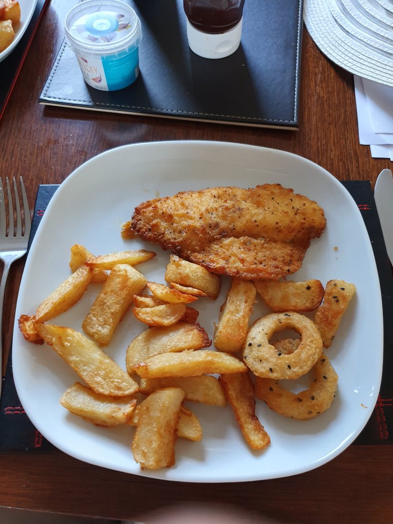 This evening we had friday fish and chips, along with 2 lovely onion rings each! My appetite is not good though, and I left quite a bit of fish and chips.