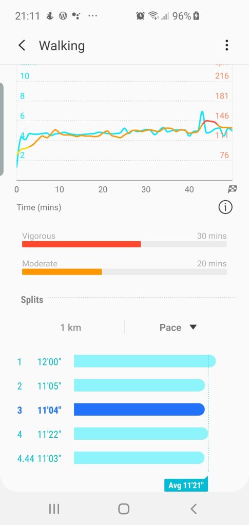 Given this was the same walk, and almost exactly the same time, I’m going to copy the activity details, so vigorous activity 30 minutes, moderate activity 30 minutes.