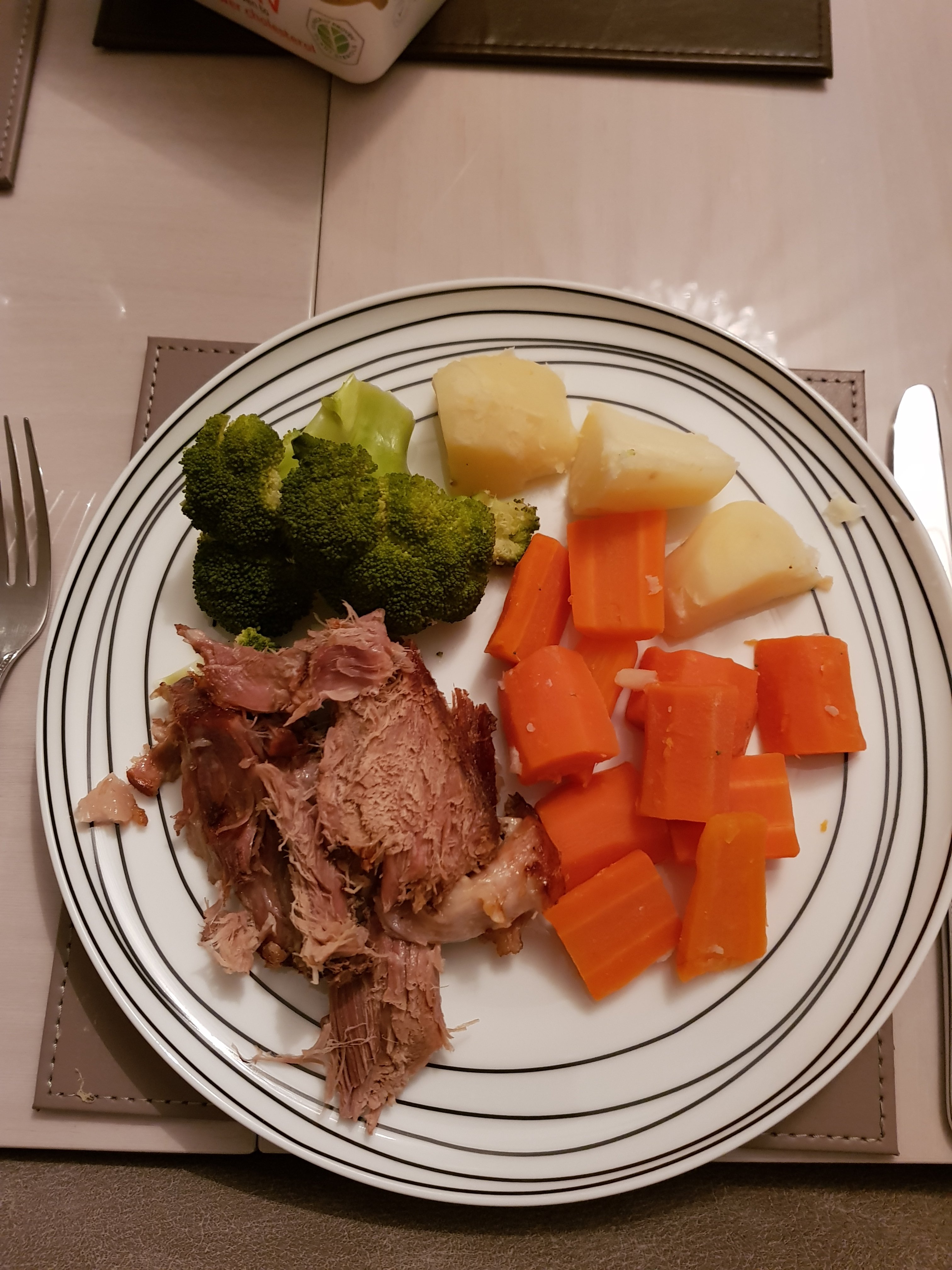 Mum cooked up a nice dinner of pork, broccoli, carrots and spuds. I left quite a bit.